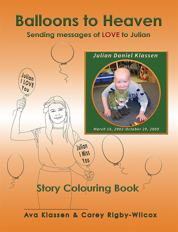 “Balloons to Heaven” is a book series written and illustrated by Ava Klassen and Carey Rigby-Wilcox. Ava is Julian’s little sister and Carey is Julian’s cousin. The first of this series will be a colouring storybook: About a balloons journey around the world, on it’s way to Heaven, with written messages of Love to Julian. This is a family project and we are seeking donations to help with the making of this book series. Once each book is complete, all the profits will be donated to the Children’s Wish Foundation. Our family has chosen this organization, as it gives 100% donations, to help children that are diagnosed with life threatening illnesses make wishes come true.